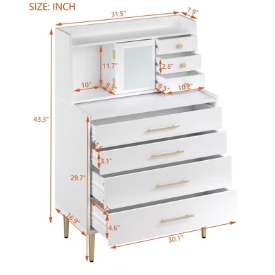 - 【Space Saving】Come with 7 drawers and lots of hidden storage spaces. There’s even a place behind the mirror to store lipstick or private items.
