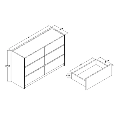 - Dimensions: 31.50″ High x 48.00 ” Wide x 15.75″ Deep; Drawer Dimensions: 3.60″ High x 21.00″ Wide x 12.10″ Deep;