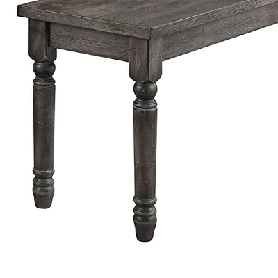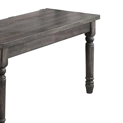 Gather your friends and family around this beautiful Wallace dining table. It features a weathered gray finish that gives off the perfect amount of distress. The transitional style is ideal for various aesthetics. Finish off the look with the matching side chairs, bench and server. The chairs feature tan linen seats and the same wooden turned legs as the table and bench, tying all the pieces together.