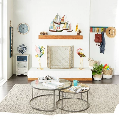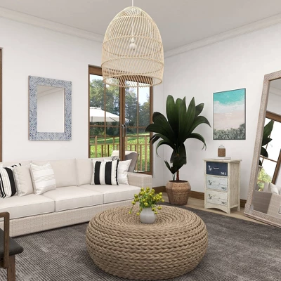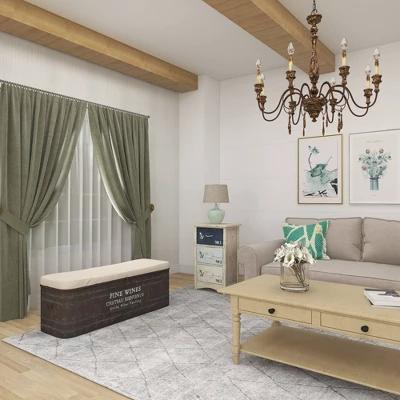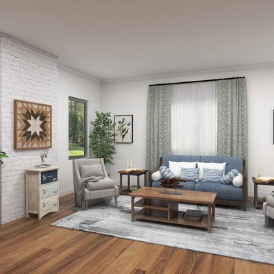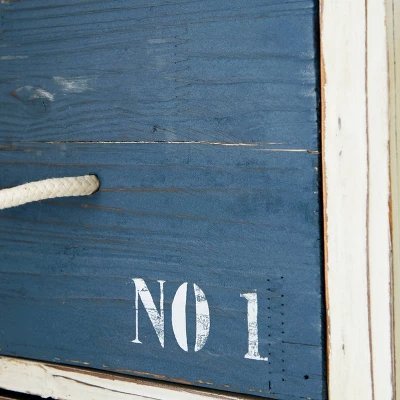 - •Distressed finish complement the sturdy wooden frame with rope handles and stencil accent details