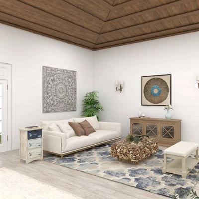 - •With an overall distressed white finish, it highlights brushed Aegean and sky blue drawer finish