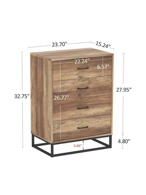 Liven up any environment with this 4 Drawer Wood Storage Dresser with Easy Pull Handle and Metal Frame from Year Color. This chest of drawers features four large drawers, a steel trestle base, easy pull handles, and smooth rails. This expertly designed piece is extremely stylish to go effortlessly with a variety of different decoration styles and aesthetics. Put it in your living room, bedroom, study, office, or other location and it will be the perfect addition. It is crafted from high-quality materials to provide a sturdy piece that will last in your home or office for a long time to come. This chest of drawers is a great addition to any room as it provides organization to keep clutter under control. Incredibly easy to assemble, it comes with clear instructions that will allow you to have it put together in no time. It will make for a lovely gift for anyone in your life as a holiday, wedding, or housewarming present. For combined beauty and quality, get the 4 Drawer Wood Storage Dresser from Year Color.